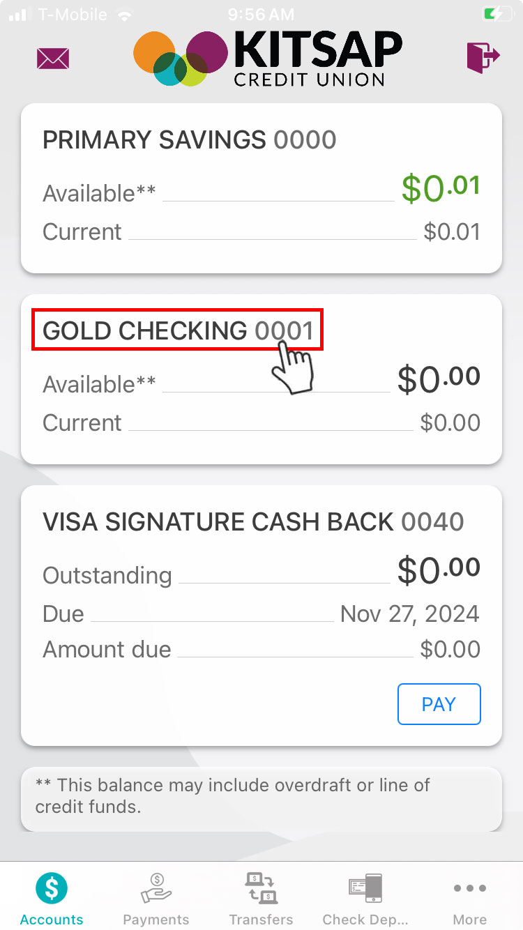 in to your Kitsap Credit Union account and choose your personal checking account.![]() | Step